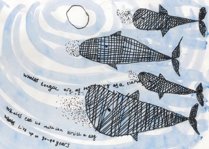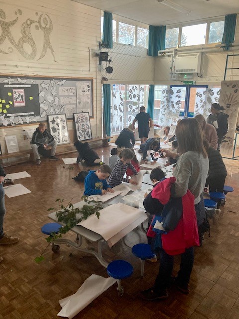 At Lyngford Park we are inspired by real life artists. We contacted illustrator Nick Maland when reading his book Big Blue Whale, he explained to us how he developed his drawing technique and was overwhelmed by the response of the LKS2 children. Artists Julia McKenzie and Richard Tomlinson also ran workshops in association with Public Health and Somerset Artworks. These focused on stopping and looking at nature and promoting wellbeing. The student’s artwork produced was exhibited as part of Somerset Art Weeks and celebrated with an evening of projection and craft activities for all the Lyngford community.